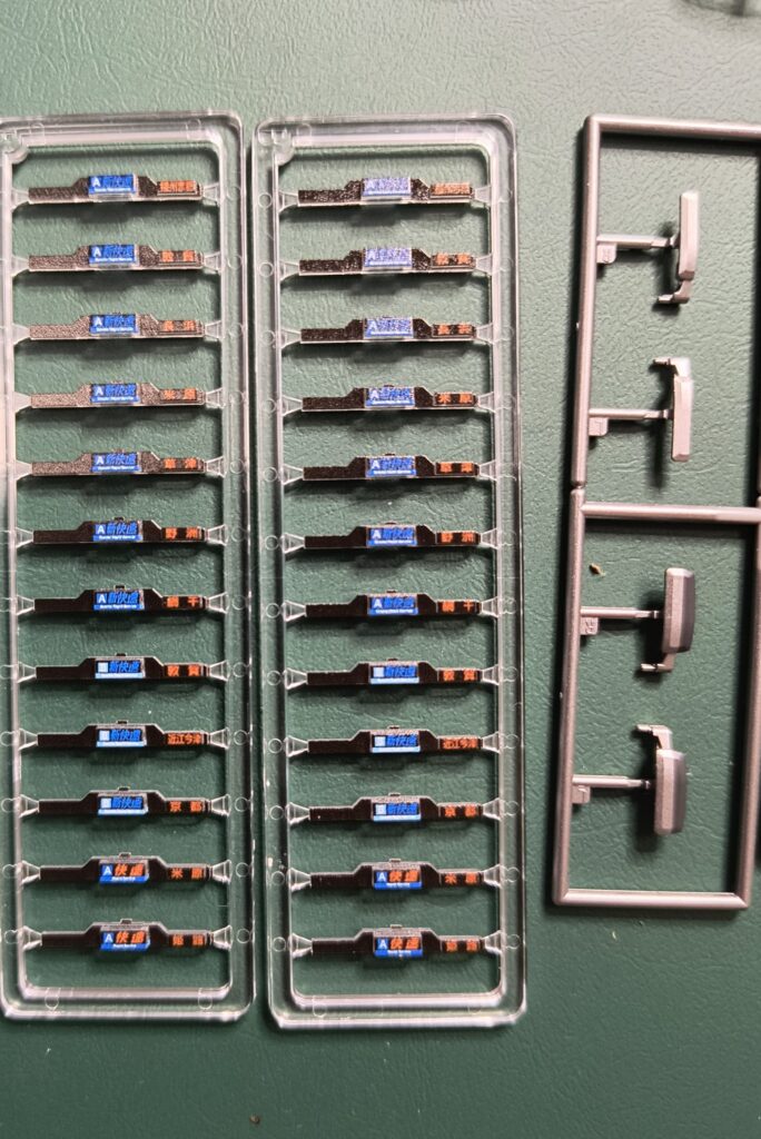 行先表示パーツはこんな感じ。割とメジャーなものがそろっています(B新快速京都は遊んでいるとしか思えませんが…)。KATOの223+225をが姫路行きのため、米原方面で適当に設定しようかなと。幌は非連結面用と連結面用が2つずつ付属します。