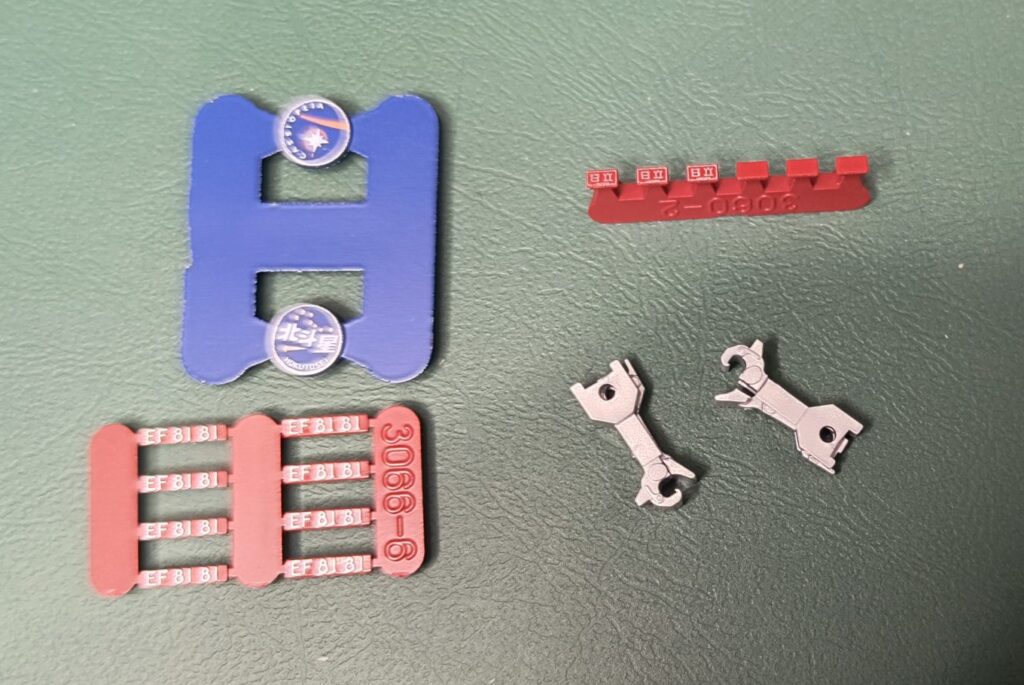 付属品はナンバープレート、メーカーズプレート、交換用ナックルカプラー、ヘッドマークです。アンテナ等は取付済み。特定機ということでナンバー、メーカーズプレートは1種のみの収録です。ナックルは81号機特有の銀色です。また、昨年の95号機と異なり、ナンバーはゲート処理をしないとバリが目立つ仕様です。