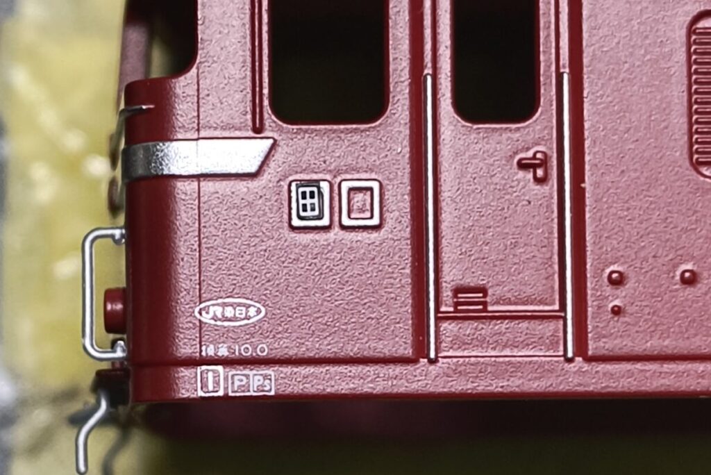 また、カプラーは製品付属のナックルではなく、マルチナックルカプラーをクレオスの8番シルバーで塗装したものです。製品付属のナックルに比べて造形に優れるほか、先日入線したTOMIXの混成編成と連結させることができます。